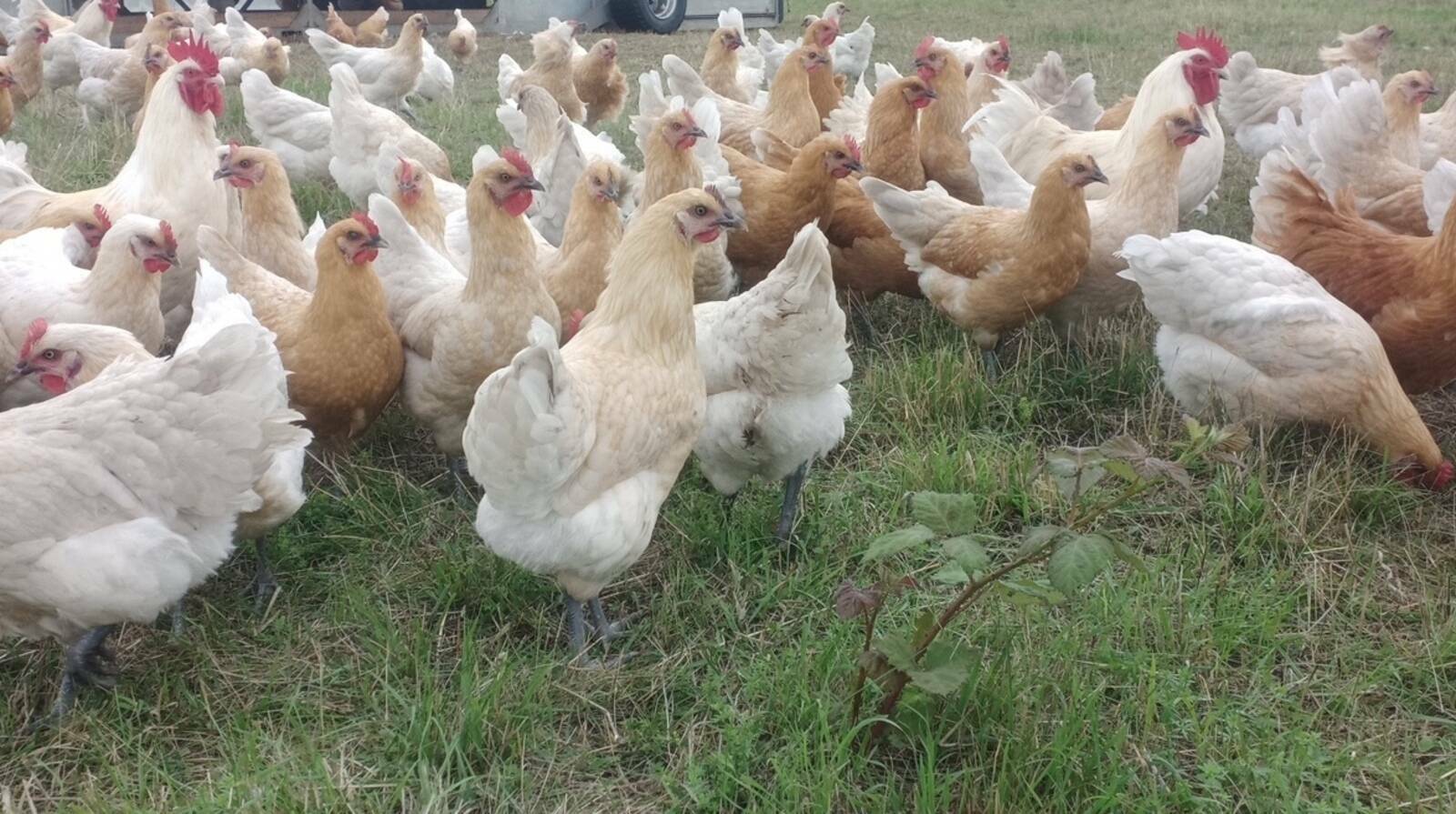 Auf dem Grünland tummelt sich unsere Hühnerschar mit den Herdenschutzhunden. Durch den Weideumtrieb kommen alle in den Genuss, regelmäßig neues Land zu erobern und sich frische Gräser und Kräuter schmecken zu lassen. Was einen Mehraufwand für uns bedeutet, hilft den Tieren und der Erde gesund zu bleiben.