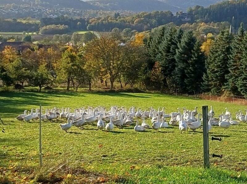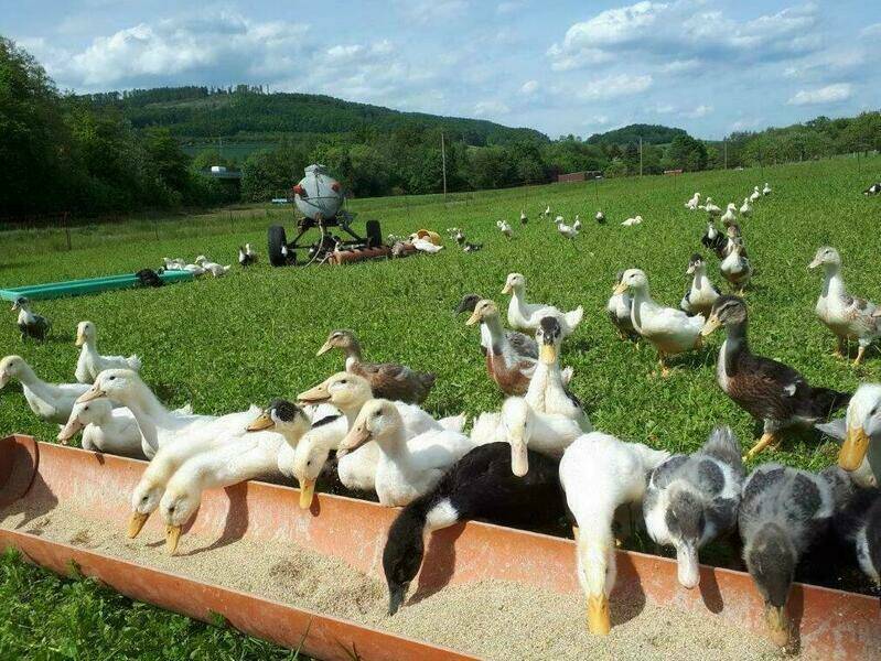 Die Enten und Gänse stammen aus der Haltung von Jonas Dorn, unserem geschätzten Kollegen und Fachmann für Brüterei und Aufzucht von Geflügel. Jonas hat in seinem kleinen Betrieb in Witzenhausen von der Elterntierhaltung über die Brüterei, die Aufzucht und die Schlachtung im Ort bei Bio-Frischgeflügel Roth alles in seiner Hand.